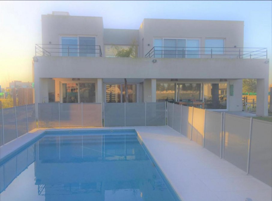 Hermosa propiedad minimalista, de 292 m2, distribuida en dos planta. Seis ambientes, en la planta baja cuenta con amplia entrada vehicular, hermoso living comedor con hogar, toilette, amplia cocina con isla de silestone, galería, parrilla, jardín totalmente parquizado y piscina, con cerco de protección. En planta alta, preciosa suite principal, cuatro dormitorios y tres baños. Balcón aterrazado con vista al parque y piscina.
