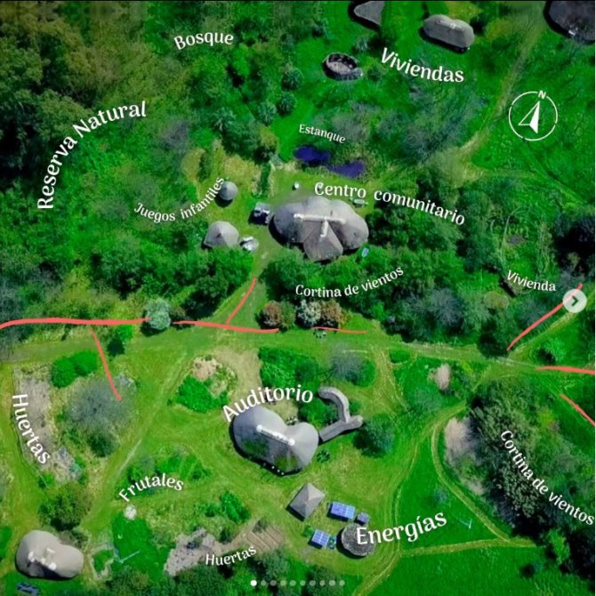 Utilizan el sistema de copropiedad que ofrece la figura legal del condominio, para que cada persona disponga de una parcela para su casa y de un amplio espacio de 7 hectáreas, para desarrollar las actividades productivas que cuentan con todos los elementos para la producción agroecológica. Además de los cultivos que realices hay una gran cantidad de productos que pueden cosecharse porque son parte de cada copropietario, como madera y leña, bambúes de gran diámetro y frutas frescas y secas. Se dispone de galpones, invernadero y red de riego para la producción hortícola. Para la producción animal se dispone de espacio para gallineros, pastoreo y apicultura.