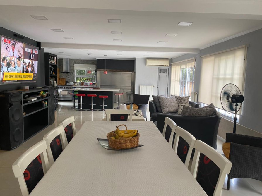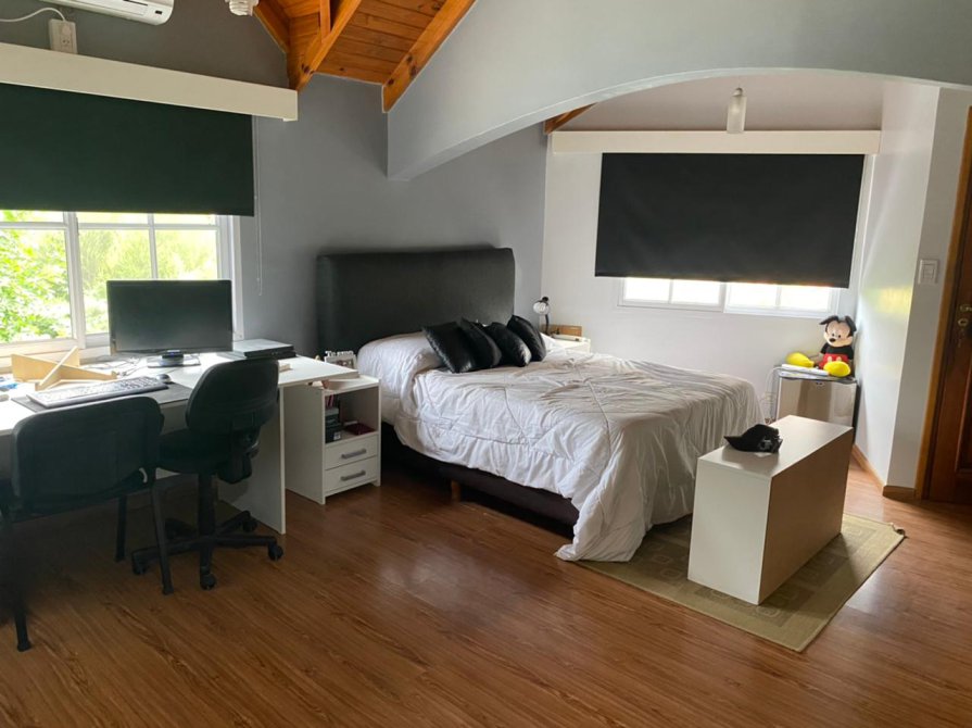 Hermosa propiedad en perfecto estado de conservacion, tiene 300m2 sobre lote de 800 m2 en esquina. Ideal para familias numerosas. De dimensiones amplias y excelente ubicacion dentro del barrio, a solo metros del acceso. En Planta baja cuenta con hall de acceso, un living amplio, escritorio, toillete, cocina con isla, comedor super amplio con sector de parrilla cubierta. En Planta Alta cuenta con 5 dormitorios de los cuales dos de ellos son en suite super amplios y el tercero master suite con sector de living, vestidor, baño con jacuzzi y ducha escocesa.