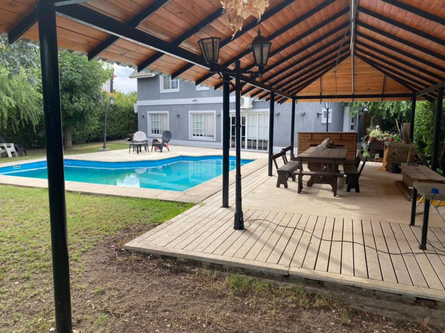 Cochera totalmente cubierta. Hermoso quincho tipo pérgola recién hecho (metros cuadrados extras a la casa). Piscina. Jardín parquizado con todo el cerco perimetral con vegetación dando mucha privacidad.