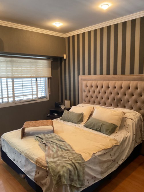 P.Alta: Por escaleras de marmol y pasamanos de madera se accede a la planta alta, Hall distribuidor amplio y muy luminoso, Dormitorio Principal con amplio Vestidor doble, muy buen ingreso de aire/luz desde el este, ventana con persianas tipo barrio de madera, Baño sectorizado en Suit, con vanitory, ducha y sanitarios de primera con bañera de hidromasajes, Segundo dormitorio con placard empotrado completo, y tercer dormitorio al frente, con ventana completa y placard completo puertas corredizas e interior completo. Un Baño completo ceramicado, con vanitory mesada marmol de carrara con lavatorio, y sector de bañera con mampara. Cuarto dormitorio super amplio (actualmente oficina) tambien con vista al frente con techos de madera a la vista, La propiedad posee tanque elevado de alta capacidad, bomba elevadora, los pisos de los tres dormitorios son de madera flotante primera calidad. iluminación con excelente gusto estético, preparada para colocar grupo electrógeno.