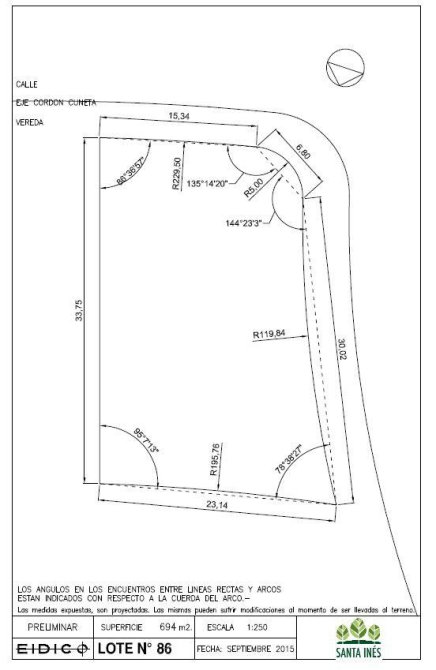Lote en el Barrio Santa Ines de muy fácil acceso, en Juana de Arco entre la ruta 58 y Sargento Cabral. Es el lote 86 ubicado en la zona de la primer etapa, por lo que es un sector casi totalmente construído que cuenta con todos los servicios agua; cloaca; gas; electricidad subterránea, alumbrado público. La superficie del terreno es de 694 m2. Valor u$s 67.000 libre de gastos. El terreno ya tiene posesión.