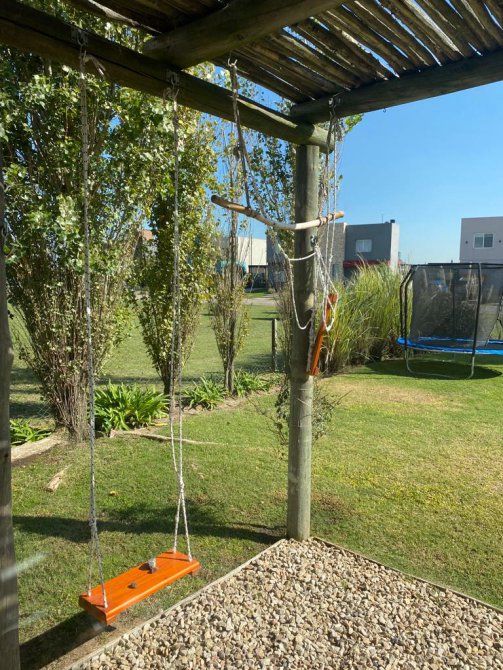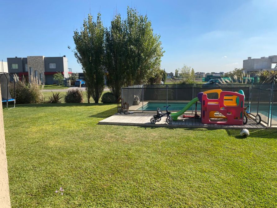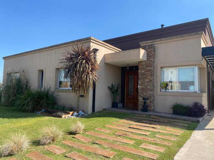 Hermosa propiedad distribuida en una planta, muy luminosa y funcional. Entreda vehicular techada. Amplio living comedor con cocina integrada. Lavadero. Dos dormitorios, baño completo. Amplia suite con vestidor. Hermosa vista al parque. Galeria, parrilla y piscina.