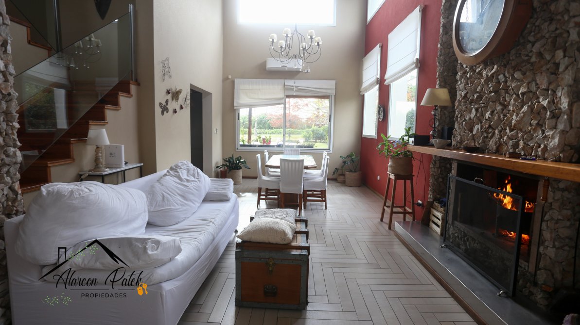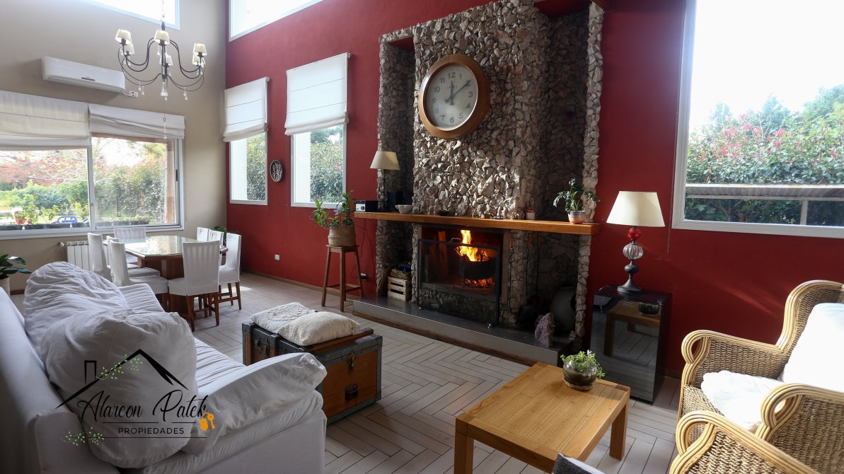 - Living con hogar junto al Comedor con pisos de porcelanato.