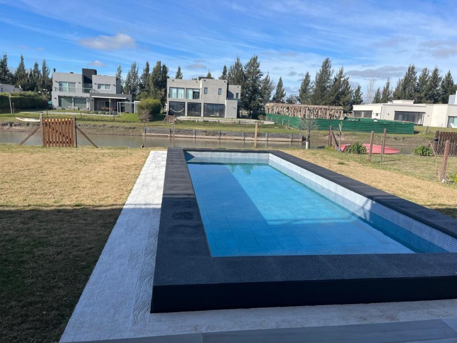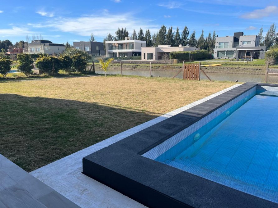 Hermosa propiedad con detalles de Categoria en uno de los Barrios mas lindos de Canning. La propiedad se encuentra distribuida en dos planta. En planta baja cuenta con importante acceso vehicular, Amplisimo living comedor, toilette de recepcion, hermosa cocina, y dependencia de servcio. Gran galeria con vista a la laguna. Piscina con desborde infinito a los cuatro lados. Hermosa vista a la laguna. En plata alta sector de escritorio. Dos dormitorios con placrad y aire acondicionado. Amplia suite con gran vestidor. Balcon terraza corrido con hermosa vista a la Laguna.