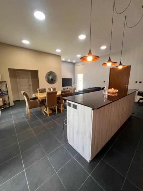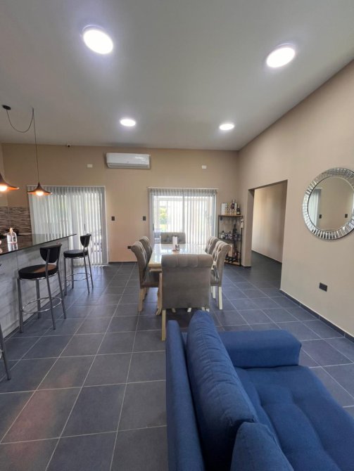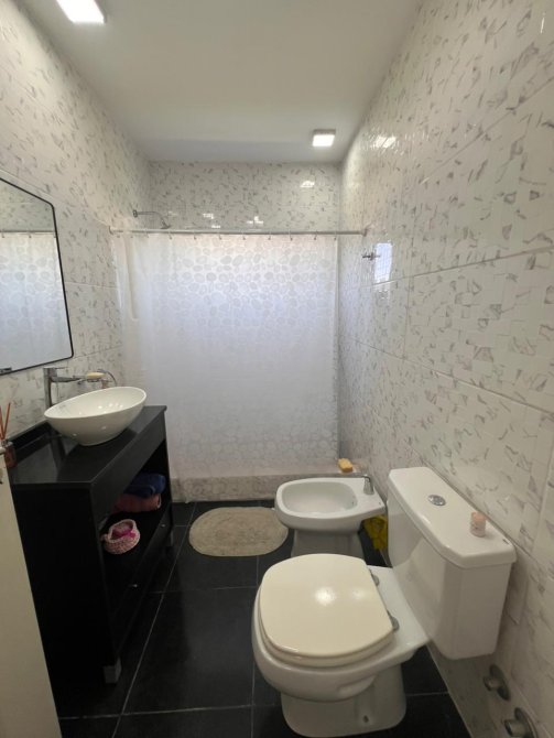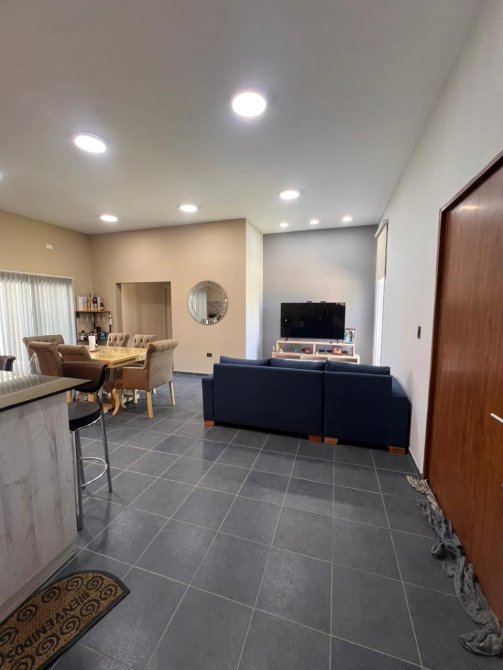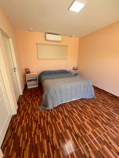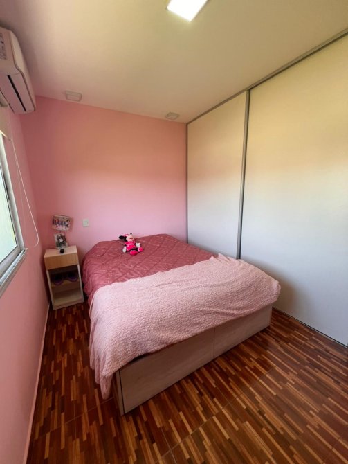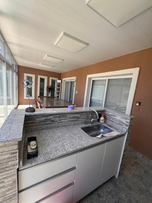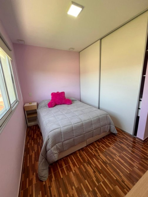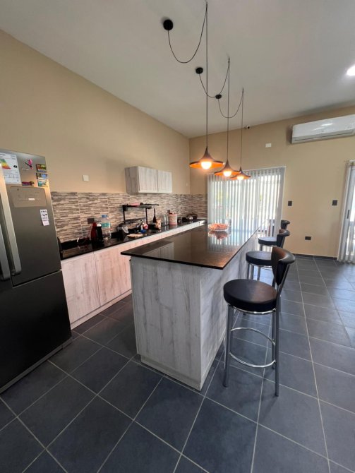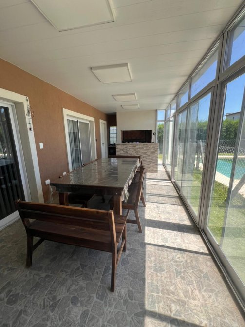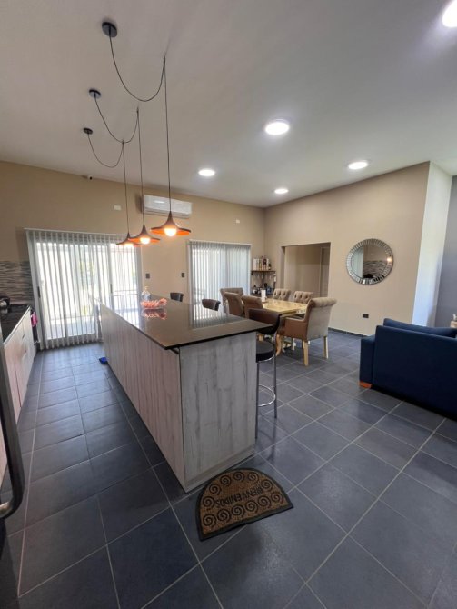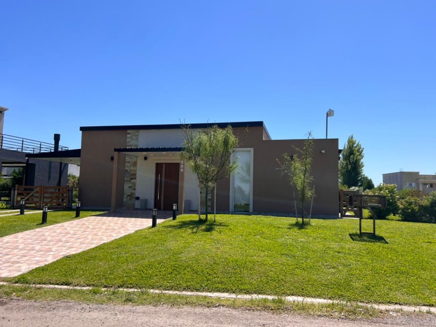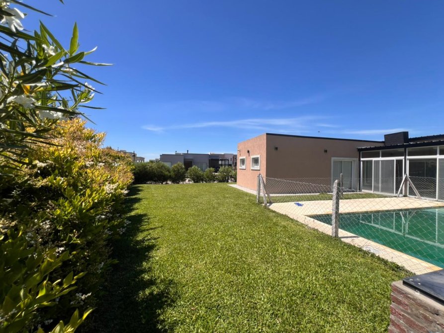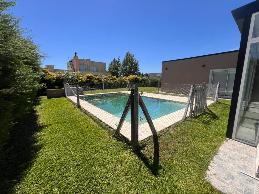 Conformada por Living/comedor, Cocina con Isla, amplia mesada y bajo mesada de melanina con cierre fácil, grandes ventanales todos con DVH, despensa, calefacción por Tiro balanceado, Pisos de cerámica en todos los ambientes. Además cuenta con loza radiante sectorizada por ambientes. Aires acondicionado central, Baño completo con ducha, 3 habitaciones, la principal en suite con vestido y baño completo, en el exterior se encuentra una amplia galería cerrada con vidrio, parrilla, piscina cercada, fondo libre con grama bahiana y riego por aspersión.