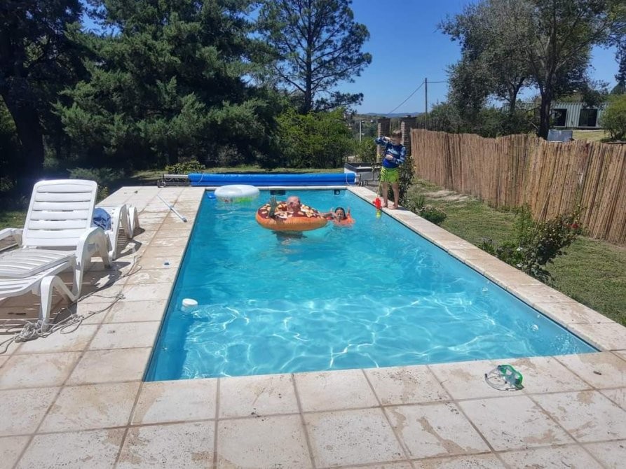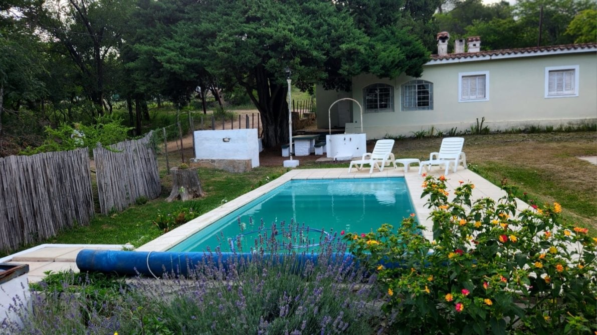 HERMOSA CASA EN VENTA EN SIERRAS DE CORDOBA, C/:PILE CLIMATIZADA AMOBLADA P/10 PERS. PERMUTO. Paisaje soñando en Villa Flor Serrana a 18 km de Carlos Paz a 50 minutos de Cordoba. Comodidades 3 dormitorios, 2 baños . Comedor de 6x4, cocina . Lavadero interno ( posible 4to dormitorio) y un cuarto de herramientas. 160 mts cubiertos, 1080 mts terreno . Gran piscina de 7,35 x 3,2 x 1,40 con 8 hidros, luces full led y cobertor de seguridad. El parque tiene un pino inmenso de 15 mts de diámetro que le da sombra a una mesada con bancos de cemento. Hay un asador y cochera doble .. Tiene espacio para construir hasta 4 cabañas o alquilar con excelente rentabilidad. Frente a la casa esta el ingreso a la reserva Los Chorrillos. Un lugar maravilloso donde los niños viven experiencias inolvidables para disfrutar con la familia y amigos, también optar por vivir en un lugar donde reina la naturaleza.