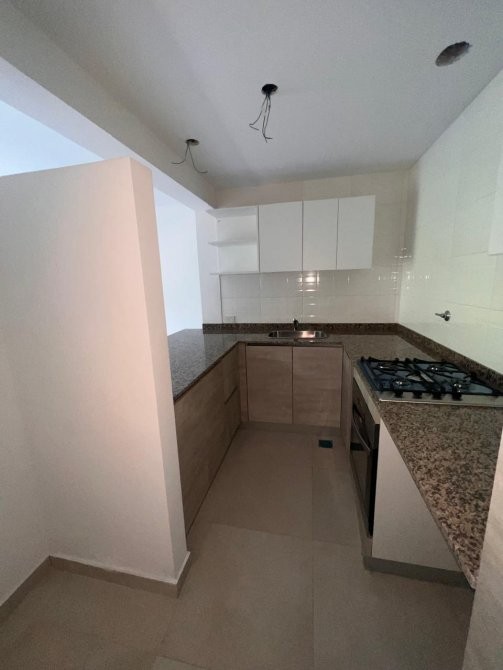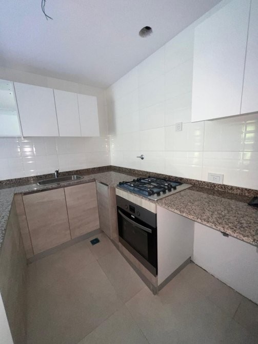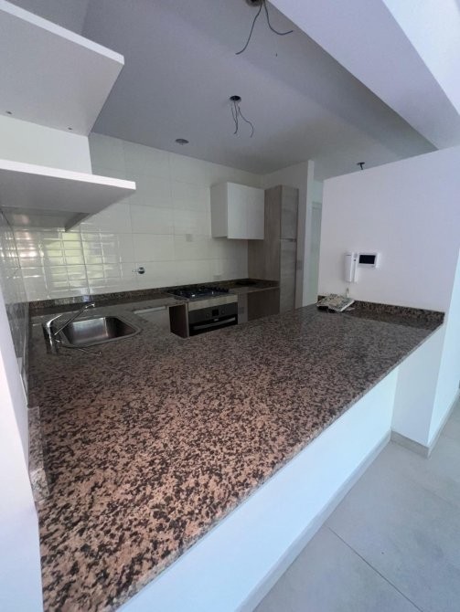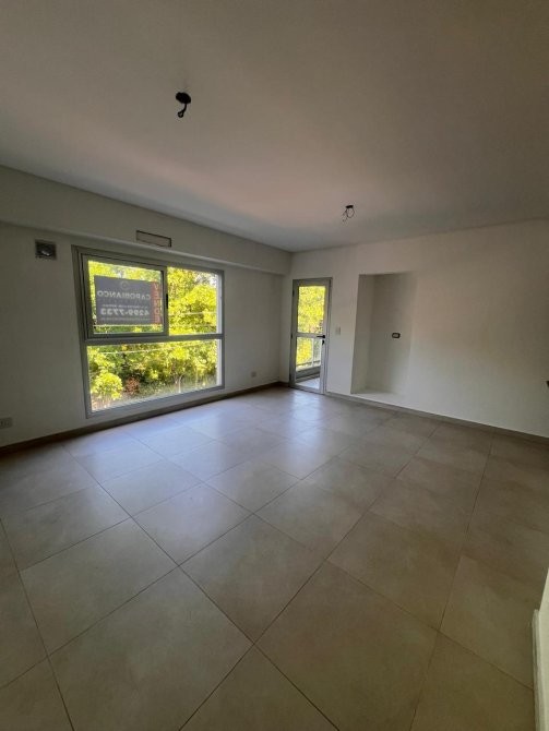 Hermoso departamento 2 ambientes, en 2° piso al frente, muy luminoso. Cuenta con living comedor, cocina integrada con amplio pasaplatos, anafe, horno y muebles bajo y sobre mesada. Dormitorio con placard, balcón al frente con parrilla y doble ingreso desde el living comedor y el dormitorio. Baño completo. Calefacción central por losa radiante. Cochera semicubierta.