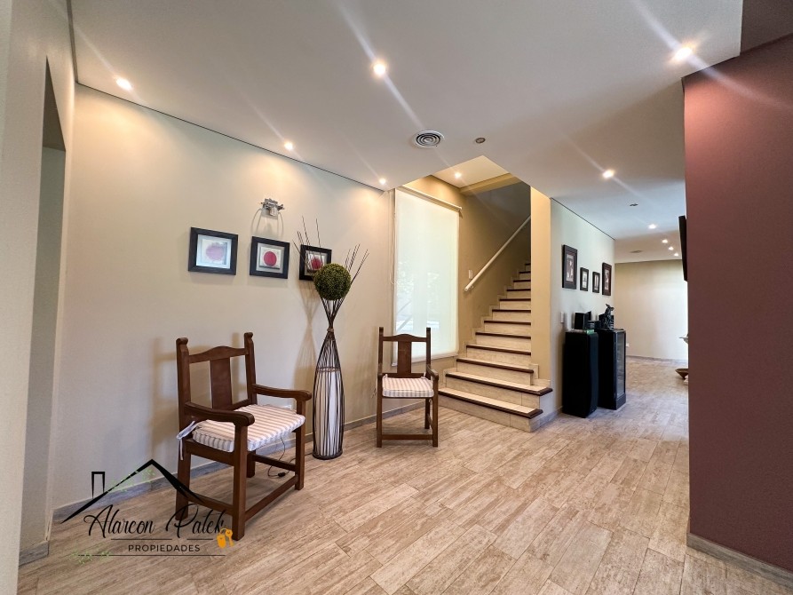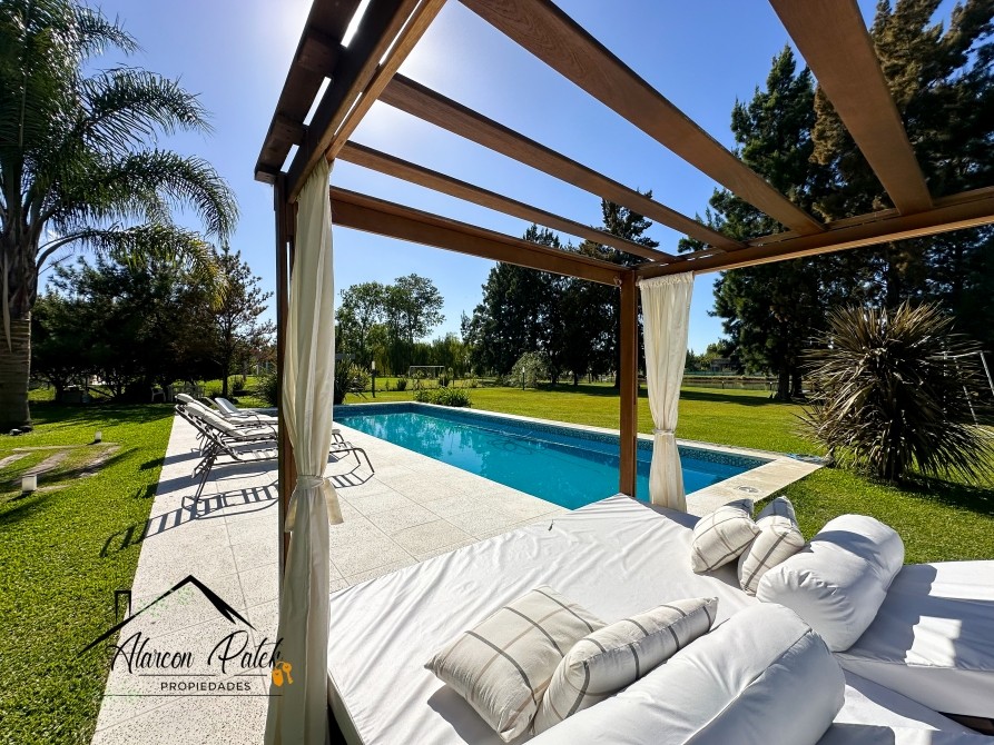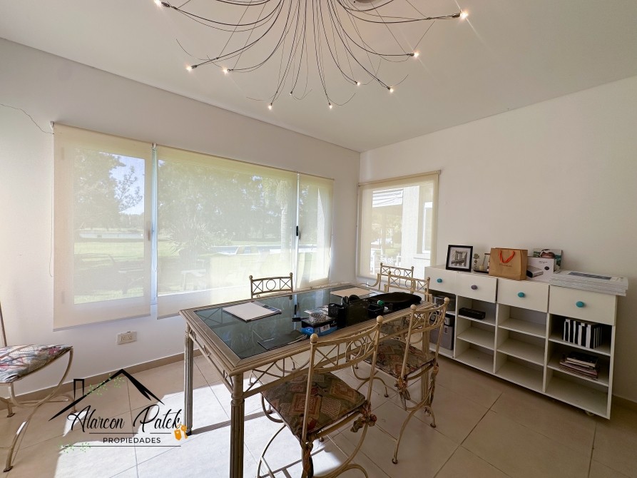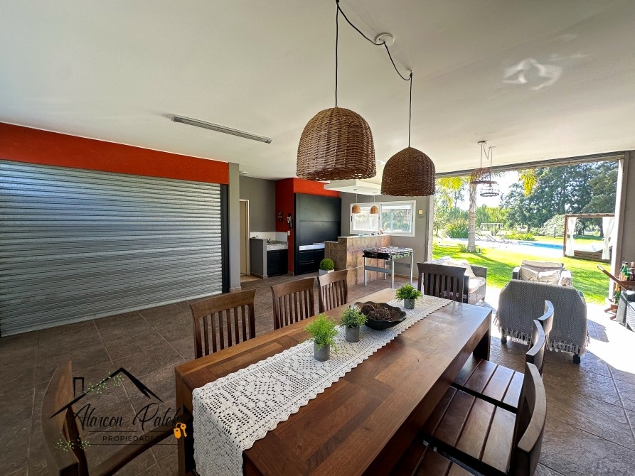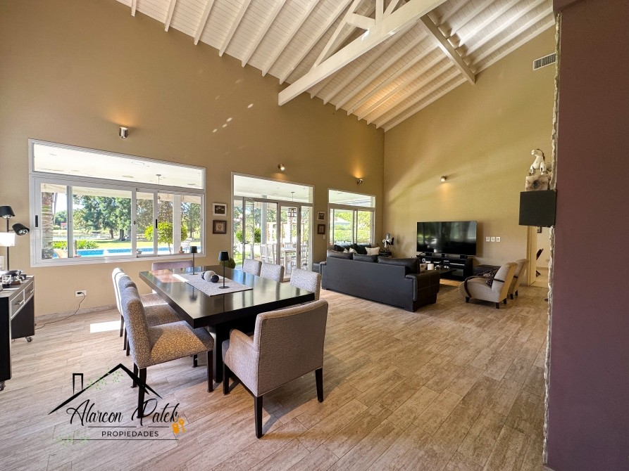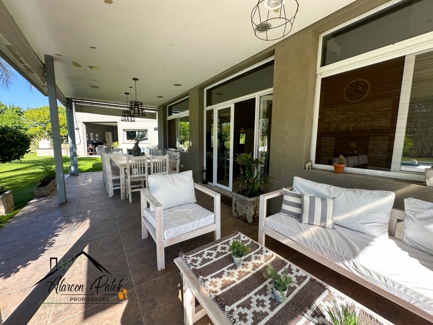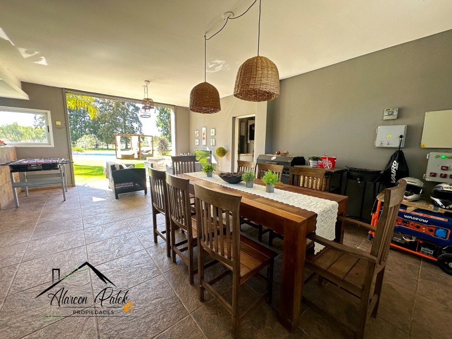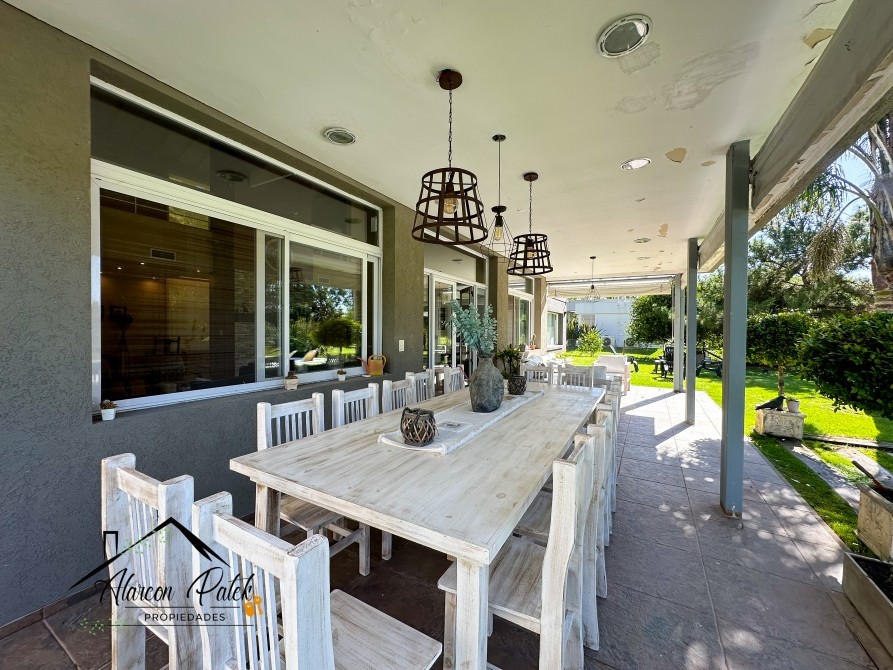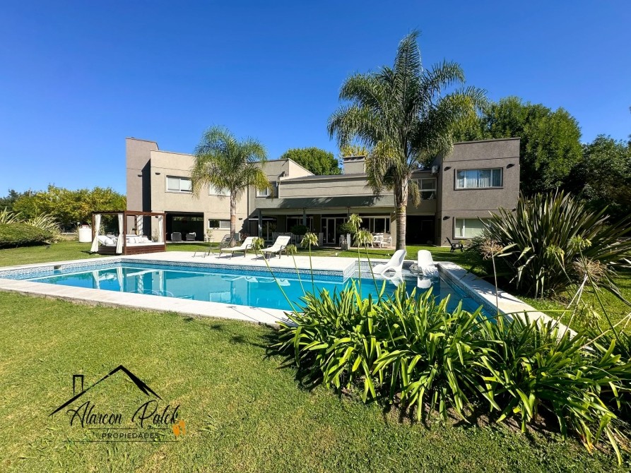 Espectacular propiedad de 500 m2 sobre lote de 2800 metros con fondo a la laguna. Amplisimo living comedor, comedor, diario, cocina con isla y cocina industrial.Cinco dormitorios ( dos de ellos en suite con vestidor). Siete dormitorios en total. Siete baños. Dos dormitorios en planta baja o escritorio. Impecable parque con cerco vivo, muelle y riego por aspersion. Piscina de 12x4 con playa humeda. Grupo electronogeno automatico.Dos equipos de aire acondicionodado central. Todos los servicios. La propiedad posee escritura.