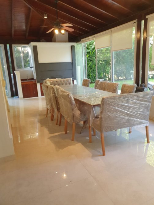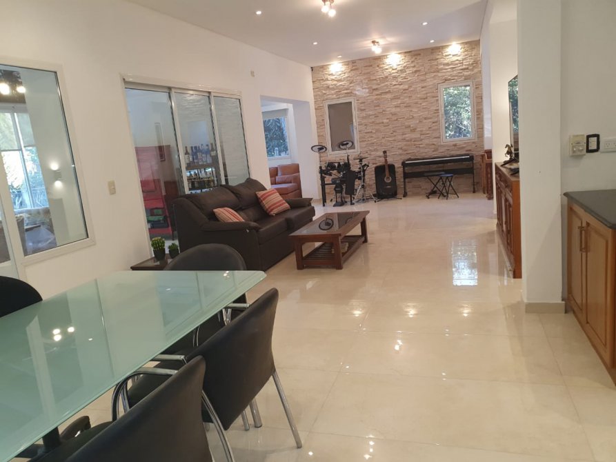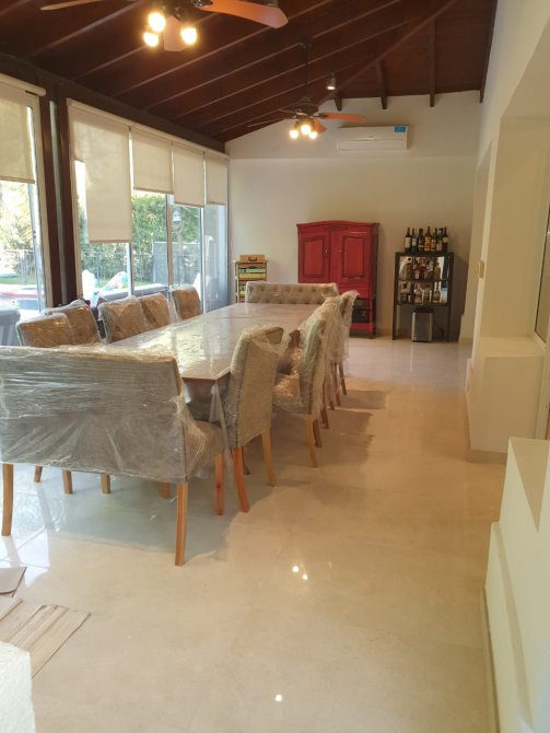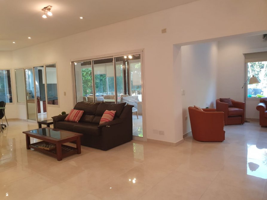 PB: Amplio Hall de recepción, Toilette bajo escalera, dormitorio auxiliar/escritorio con baño. Living comedor amplio con espacio para proyector/cine. Cocina integrada al comedor diario a través de desayunador. Lavadero con doble circulación. Amplia galería cerrada con parrilla a gas con mesada.