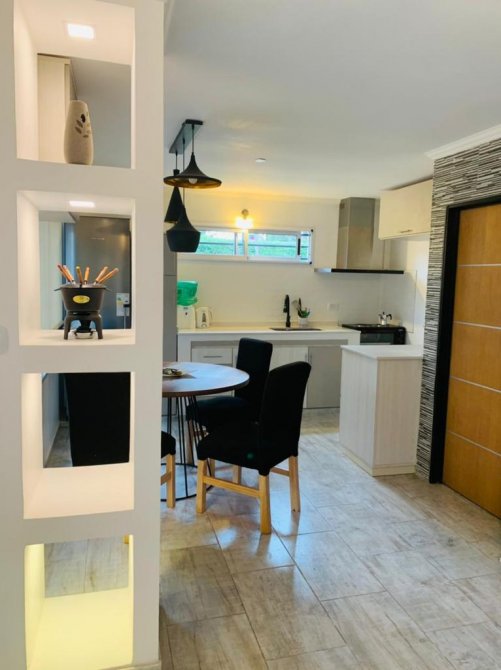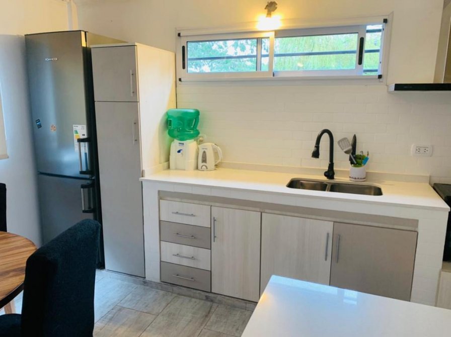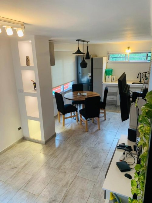 Hermoso duplex con detalles modernos. Distrubuido en dos plantas. En planta baja cuenta con living, comedor cocina y toilette. Amoblamiento de cocina completo bajo mesada y alacena. En planta Alta cuenta con un dormitorio con placard con frente de espejo, segundo dormitorio y baño comleto con bañera. Aire acondicionado frio calor en todos los ambientes. Espacio guarda coche exclusivo correspondiente a la unidad funcional.