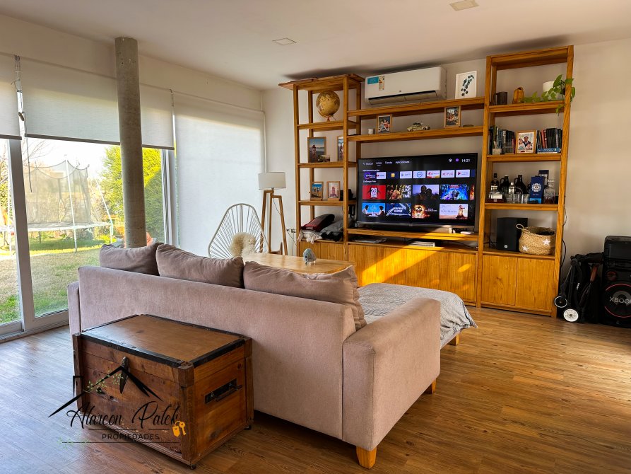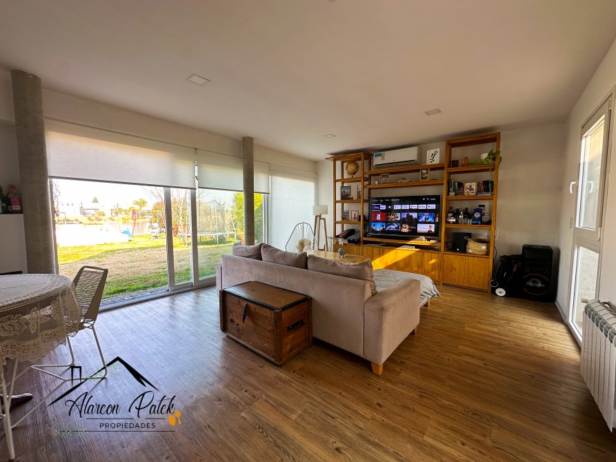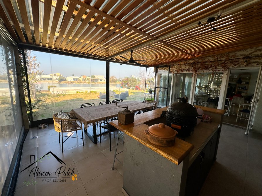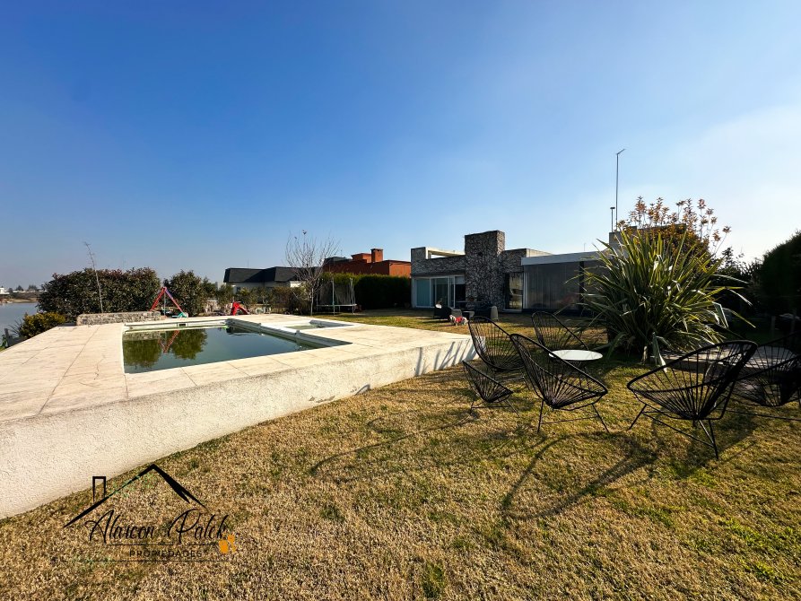 Hermosa propiedad con amplio fondo a la Laguna. Distribuida en una planta, cuenta con entrada vehicular, amplio living comedor, cocina. Galeria semi cubierta, fondo libre y piscina. Tres dormitorios uno de ellos en suite con vestidor. Caldera. Aire acondicionado frio/calor en todos los ambientes. La propiedad se encuentra preparada para seguir construyendo en planta alta.