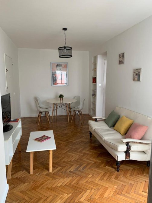 Alquiler temporario, dos ambientes amueblado y equipado, 34 metros cuadrados, contrafrente, octavo piso. Muy luminoso con amplios ventanales en el dormitorio, living y cocina.