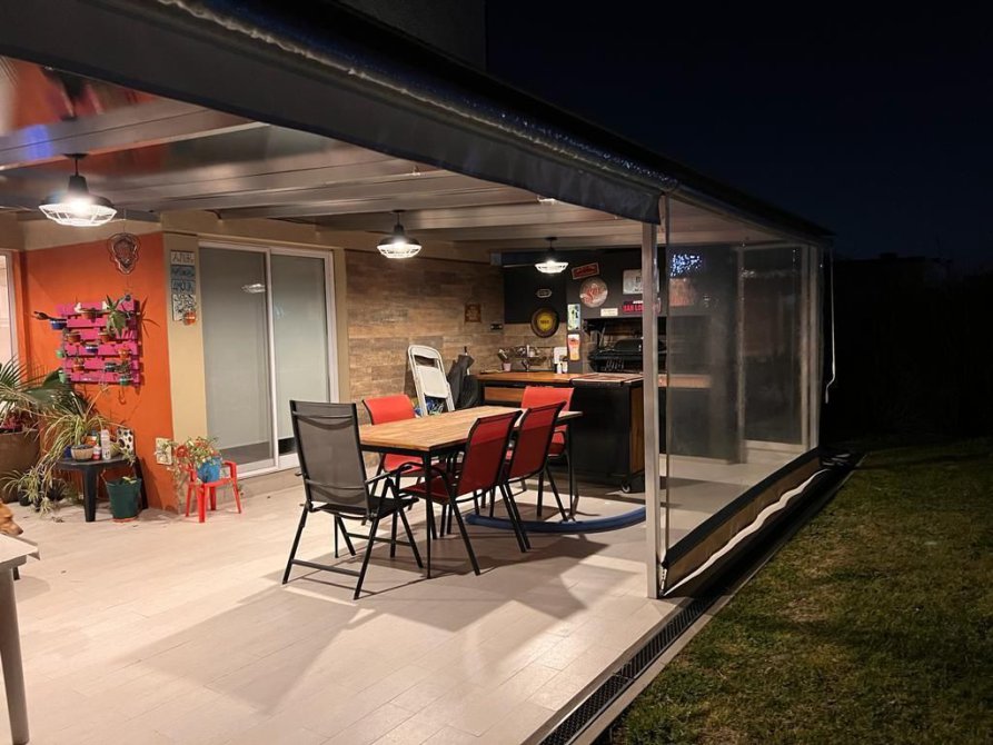 Galería con Parrilla y Jardín bien parquizado con grama bahiana ,