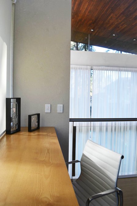 Planta Alta: Hall distribuidor con 2 escritorios, espacio abierto en doble altura, vista al frente Master Suite con Vestidor. Frente e interiores de placard en fresno natural Baño compartimentado. Balcón al frente. 2 Dormitorios con placards y 1 Baño completo - un dormitorio con balcón al fondo-. Acceso a terraza por escalera caracol - Terraza con iluminación.