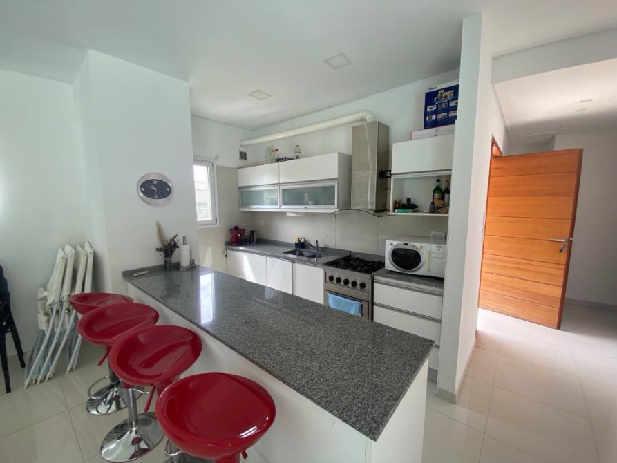 • Living y comedor integrados con una cocina moderna que incluye barra desayunadora, perfecta para disfrutar momentos en familia o con amigos.