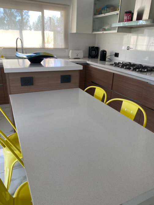 Muebles de primera calidad, bacha Jhonson, griferias FV, mesada Silestone.