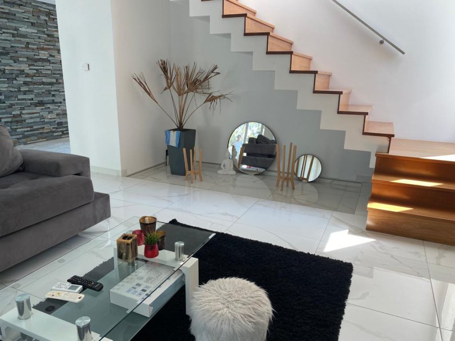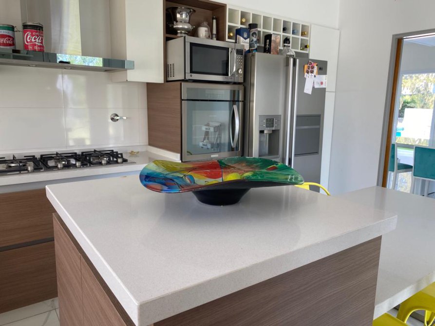 En planta baja cuenta con acceso de auto, cochera cubierta, ingreso a la cocina y comedor diario con muebles de primer nivel, isla central con puerta doble divisoria.