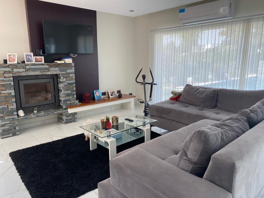 Living comedor amplio, lumimoso, con amplios ventanales, hogar, detalle interno debajo de escalera, toilette de recepcion, escritorio con placard.