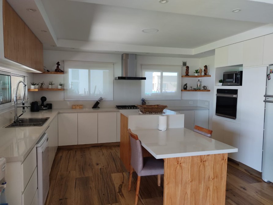 Todos los ambientes cuentan con aire frío-calor. Galería semicubierta. Parrilla mecanizada. Amplio jardín con una vista espectacular a la laguna Piscina con playa húmeda. Muelle exterior con bote. Casa totalmente equipada con electrodomésticos de primera categoría, vajilla y ropa de cama. Lista para mudarse.