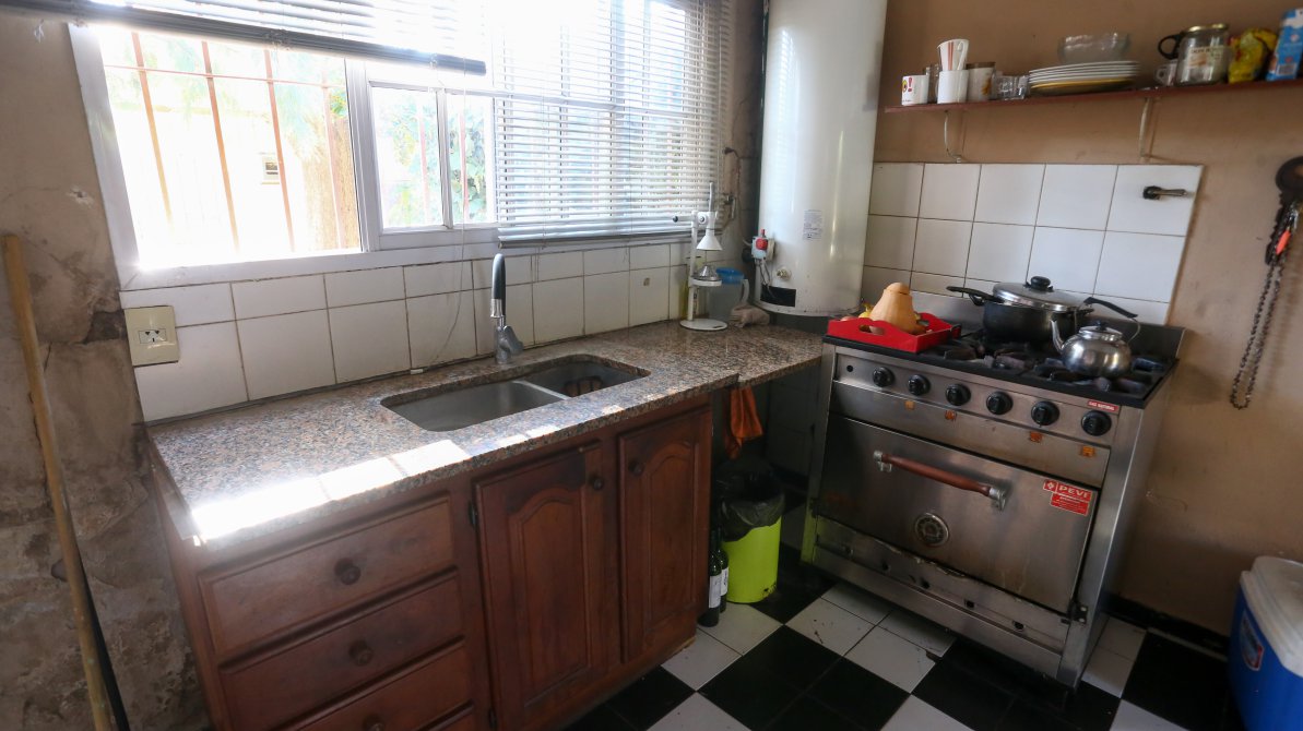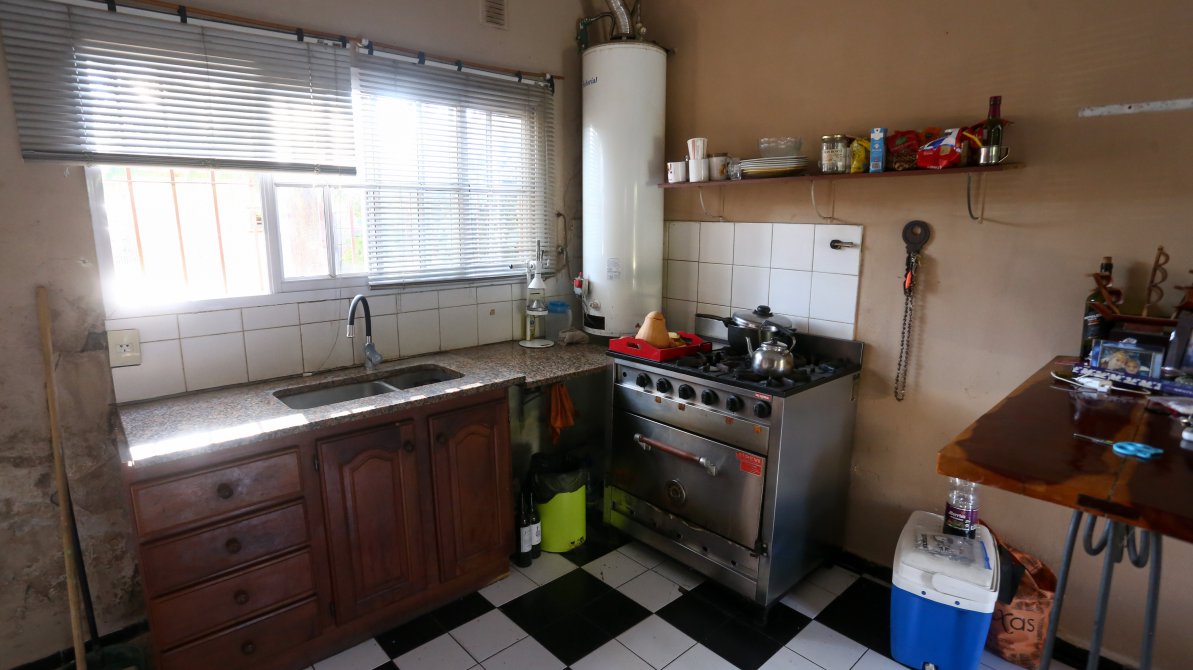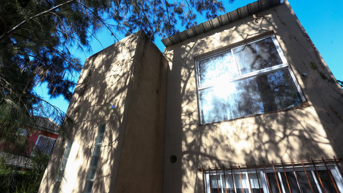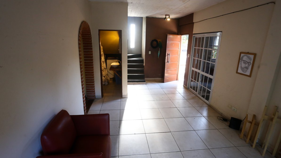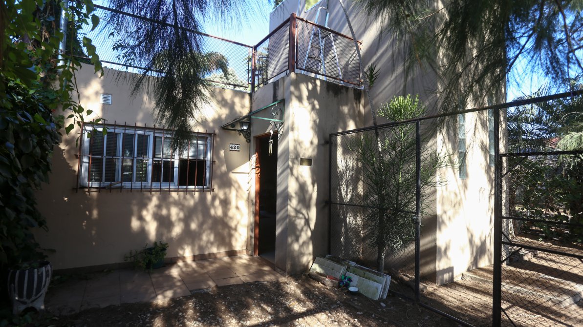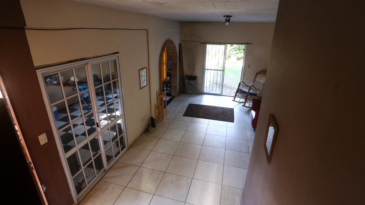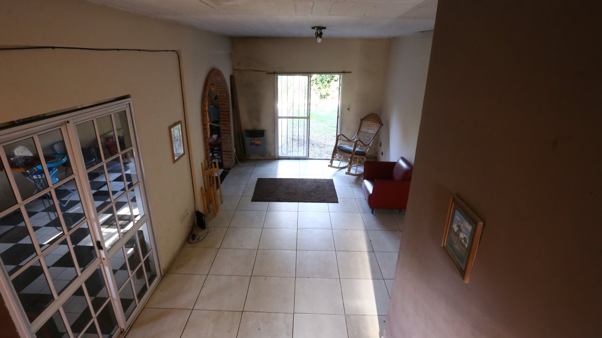 Fachada de gran y añeja arboleda con un espacio guarda coche. Acceso por el living integrado al comer cocina, ambos con salida al parque donde se encuentra la piscina de hormigón y espacio verde.