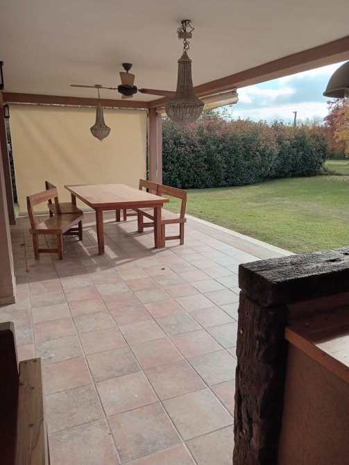 - galería semi cubierta con parrilla, mesada de madera y bajo mesada;