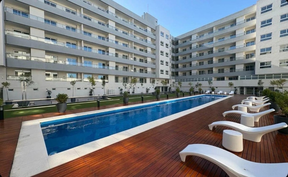 Hermoso departamento a estrenar en Canning Center. Dos ambientes con cocina integrada, mesada de silestone, alacenas y barra. Baño completo con bañera. Vista a pulmon y piscina.Dormitorio con placard.Pre instalacion de aires acondicionados.
